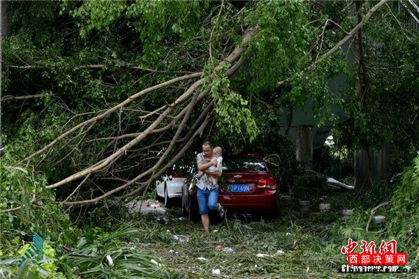 9月15日,今年第14號臺風(fēng)“莫蘭蒂”于凌晨3時(shí)05分在廈門翔安沿海登陸,登陸時(shí)中心附近最大風(fēng)力15級(48米/秒,強(qiáng)臺風(fēng)級),中心氣壓945百帕。圖為廈門市區(qū)大批車輛被吹倒的樹木損壞。