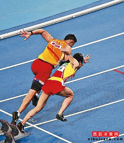當(dāng)?shù)貢r間9月16日,在里約殘奧會田徑比賽女子400米T11級決賽中,中國隊選手劉翠青和領(lǐng)跑員徐冬林以56秒71的成績奪得冠軍。圖為劉翠青(右)和徐冬林在比賽中起跑。