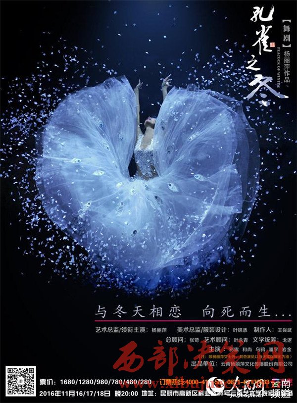 10月25日,由楊麗萍領(lǐng)銜主演并擔(dān)任藝術(shù)總監(jiān)的舞劇《孔雀之冬》在中航·璽樾舉行全球發(fā)布會?!犊兹钢穼⒂?1月16日至18日在云南藝術(shù)學(xué)院實驗劇場(麻園)進行公演,拉開全國巡演的序幕。時隔4年,在2012版舞劇《孔雀》之后,舞神楊麗萍將再次起舞。