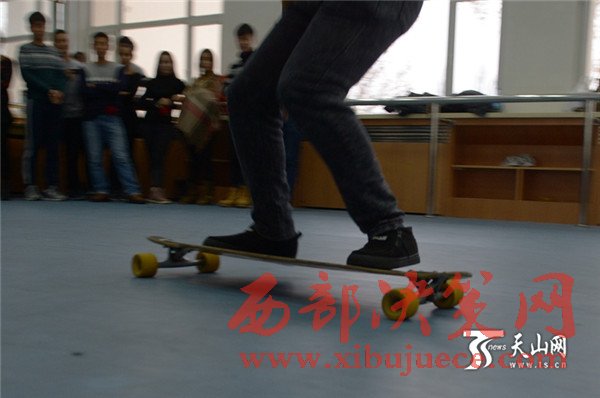 這名男生叫田澤林,正在新疆農(nóng)業(yè)大學(xué)讀大三,他同時(shí)還是新疆農(nóng)業(yè)大學(xué)libero滑板社的創(chuàng)始人之一。田澤林介紹,滑板是一種街頭文化,又是一項(xiàng)極限運(yùn)動(dòng),能讓人感受到生命的力量。傳統(tǒng)的滑板文化是人們挑戰(zhàn)自我熱愛生活的態(tài)度,當(dāng)身體隨著滑板騰空而起的時(shí)候,那感覺讓人心醉。所以,當(dāng)初給滑板社取名的時(shí)候,大家不約而同想,這個(gè)名字要具有力量性、挑戰(zhàn)性、自由性、時(shí)尚性。經(jīng)過再三討論,libero誕生。