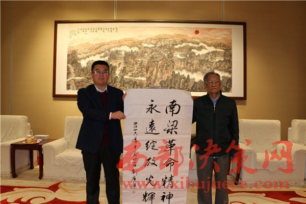 西部決策網(wǎng)訊(帥華鋒 杜杰 通訊員 趙高銪)11月21日,原全國(guó)政協(xié)常委、國(guó)家林業(yè)部常務(wù)副部長(zhǎng)劉廣運(yùn),國(guó)家林業(yè)局老干局副局長(zhǎng)、中國(guó)林業(yè)書法家協(xié)會(huì)副秘書長(zhǎng)王德宗,人民日?qǐng)?bào)海外版書畫藝術(shù)部主任助理、人民書畫藝術(shù)網(wǎng)外聯(lián)部副主任陳厚學(xué)一行,在慶陽市林業(yè)局、華池縣人民政府副縣長(zhǎng)池軍以及南梁紅色景區(qū)建設(shè)管理局辦公室主任張全鈺、南梁革命紀(jì)念館館長(zhǎng)聶明靜的親切陪同下,踏上陜甘邊革命根據(jù)地“紅色南梁”這片革命的熱土。