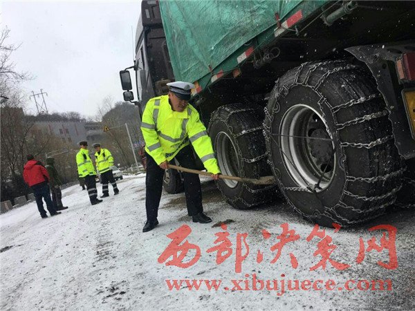 21日夜間,20余輛半掛車進(jìn)山,行至冰雪路面無法前行,滯留在路邊,導(dǎo)致道路擁堵。為進(jìn)一步加強路面管控,渭濱大隊迅速啟動《冰、雪、雨、霧自然災(zāi)害等特殊氣候條件下道路交通安全保障應(yīng)急處置預(yù)案》,從22日早上7點開始,對四軸以上半掛車進(jìn)行交通管制。同時,渭濱交警大隊,鳳縣交警大隊黃牛埔中隊迅速聯(lián)系路政部門,對積雪路段采取拋灑融雪劑、防滑沙等措施。對部分滯留車輛大隊民警已第一時間趕赴現(xiàn)場進(jìn)行疏導(dǎo),并送去了熱水和食品,并從秦嶺兩端。