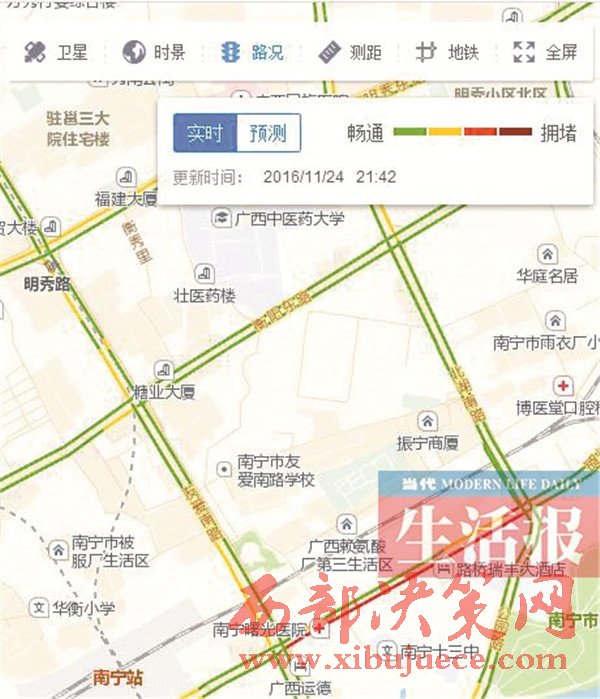 南寧交警與高德地圖合作 打開電子地圖可知哪堵車