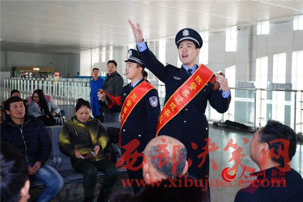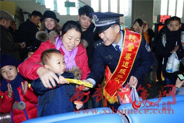 2017年鐵路春運于1月13日正式啟動。為營造春運良好氛圍,確保廣大旅客平安出行,新疆烏魯木齊鐵路公安局哈密公安處從機關(guān)和各派出所抽調(diào)100余名民警組建了10支“鐵警春運服務(wù)小分隊”,在轄區(qū)吐魯番、哈密等四個客運站和八個高鐵站,以開展防盜防騙宣傳、文藝互動演出、親民便民服務(wù)等舉措,打造“平安、有序、溫馨”春運。