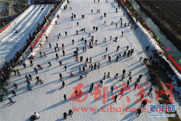 2月2日,游人在江蘇省淮安市碼頭鎮(zhèn)人工雪場(chǎng)感受冰雪的樂(lè)趣。