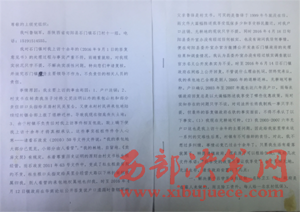 2016年12月14日,魯鋼軍來(lái)到旬陽(yáng)縣紀(jì)委,向現(xiàn)任旬陽(yáng)縣紀(jì)委書記付波反映該事件,付書記給予書面登記,并口頭承諾盡快解決。