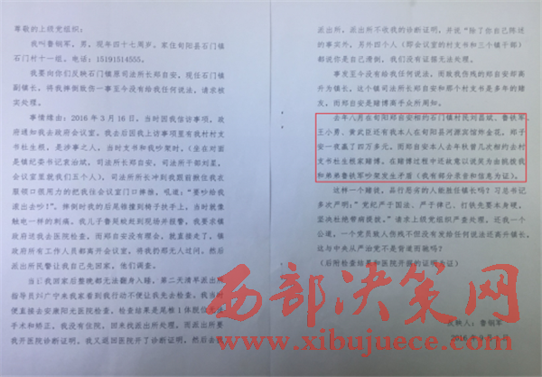 西部決策網(wǎng)訊(孟善良 林全余)近日,以“旬陽(yáng)縣石門鎮(zhèn)選用賭博高手鄭自安任鎮(zhèn)長(zhǎng)”為標(biāo)題的文章在網(wǎng)絡(luò)中廣泛轉(zhuǎn)載,接到旬陽(yáng)縣村民魯鋼軍多次反映,我社工作人員與2016年12月28日實(shí)地了解情況。