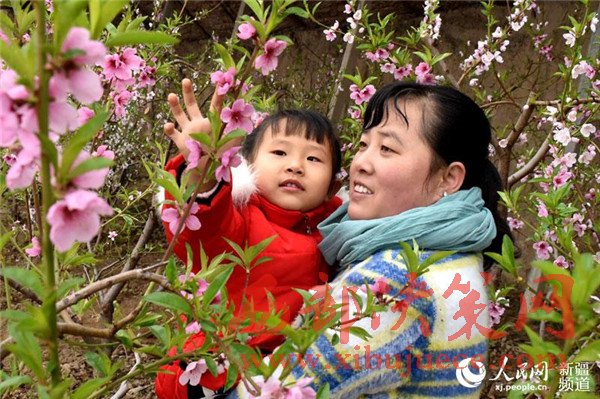 在新疆生產(chǎn)建設(shè)兵團(tuán)第五師八十六團(tuán)一溫室大棚里,桃花盛開(kāi),春意盎然,一游客帶著孩子正在觀賞桃花。目前,桃花迎來(lái)了盛花期,吸引了周邊游客前來(lái)賞花、拍照,感受春天的氣息。