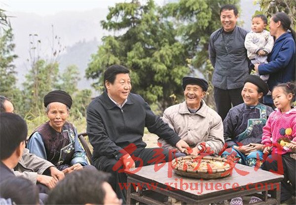 習(xí)近平在湘西土家族苗族自治州花垣縣排碧鄉(xiāng)十八洞村同村干部和村民座談。