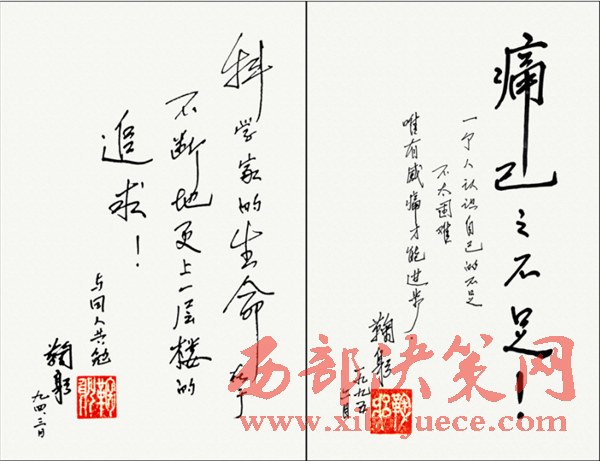 鞠躬院士在自己自傳中寫道:我對自己的評論是無偉業(yè),點燃一支燭光而已。坎坎坷坷一生,現(xiàn)在蠟炬已幾乎成灰了。愿我國早日成為培養(yǎng)諾貝爾獲得者的土壤,愿我們世世代代青出于藍勝于藍。