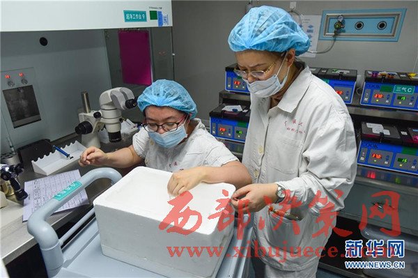 3月20日,廣醫(yī)三院胚胎實驗室人員杜紅姿(右)和陳仕萍核對從冷凍庫里提取的胚胎。