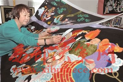 給堆繡圖中的各種人物點(diǎn)睛描眉。
