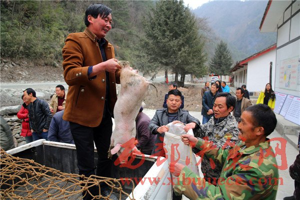 3月7日,花石村的貧困戶正在領取免費豬仔