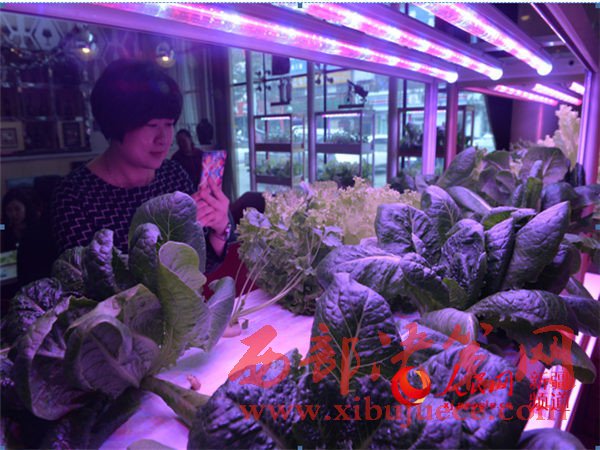 烏魯木齊市民在參觀LED植物工廠。