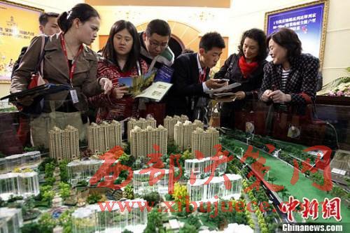 資料圖:購房人在樓盤看沙盤并咨詢售樓工作人員。