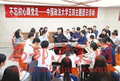 5月3日,中共中央總書記、國家主席、中央軍委主席習(xí)近平來到中國政法大學(xué)考察。這是習(xí)近平在學(xué)生活動中心參加民商經(jīng)濟(jì)法學(xué)院本科二年級2班團(tuán)支部開展的“不忘初心跟黨走”主題團(tuán)日活動。