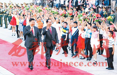國家主席習(xí)近平11日在人民大會堂同越南國家主席陳大光舉行會談。兩國元首一致同意保持雙邊關(guān)系積極發(fā)展勢頭,推進(jìn)各領(lǐng)域合作,推動中越全面戰(zhàn)略合作伙伴關(guān)系邁上新臺階,為兩國和兩國人民帶來更多實實在在利益。