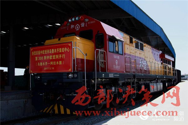 當(dāng)天,恰逢中歐班列烏魯木齊集結(jié)中心開行300列。12時(shí)10分,在汽笛長鳴聲中,X9081次貨物列車從中歐班列烏魯木齊集結(jié)中心開出,駛向哈薩克斯坦阿拉木圖,這是中歐班列烏魯木齊集結(jié)中心自2016年5月投入運(yùn)營后開行的第300趟西行班列,該趟班列的成功開行,為剛剛閉幕的“一帶一路”國際合作高峰論壇獻(xiàn)上了一份特殊的禮物。