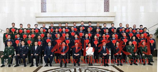 自治區(qū)領(lǐng)導(dǎo)李紀(jì)恒、布小林、任亞平、李佳、羅永綱、杜梓、馬明與全國(guó)公安系統(tǒng)英雄模范立功集體內(nèi)蒙古受獎(jiǎng)單位代表和個(gè)人合影。