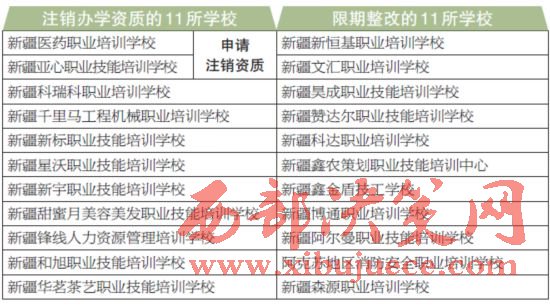新疆維吾爾自治區(qū)本級(jí)民辦職業(yè)培訓(xùn)學(xué)校中11所被注銷了辦學(xué)資質(zhì),如果您要參加職業(yè)培訓(xùn),選擇培訓(xùn)機(jī)構(gòu)的時(shí)候記得要擦亮眼。