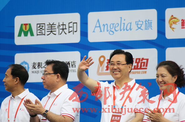蘭州市委副書記、蘭州市政府市長欒克軍向運(yùn)動(dòng)員揮手致意(杜杰 攝)