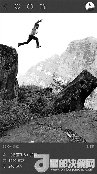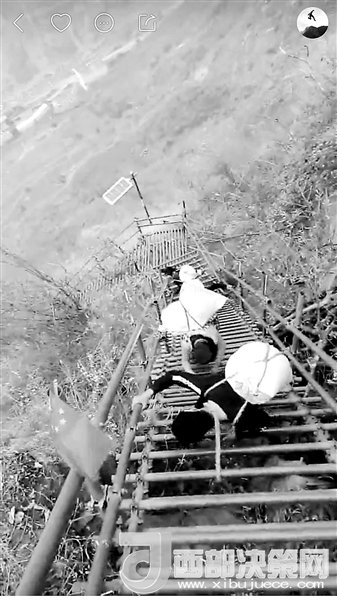 現(xiàn)在,村里24歲的彝族小伙兒拉博已經(jīng)成為首批網(wǎng)紅之一。2016年11月19日,垂直距離約800米、總共約1000級(jí)臺(tái)階的懸崖村鋼梯工程竣工。拉博就是鋼梯施工隊(duì)的一員,在山崖最陡峭的一段,他親手打下了固定的鋼釘。鋼梯完工后,拉博特意去“跑”了一遍,從山頂?shù)缴侥_僅耗時(shí)18分鐘,而這段路普通人可能需要一個(gè)半小時(shí)。從小放羊的拉博習(xí)慣了在山間奔跑跳躍,爬天梯、過吊橋、放牛羊這些生活日常,在5個(gè)月的時(shí)間里為他帶來了12.6萬的粉絲。