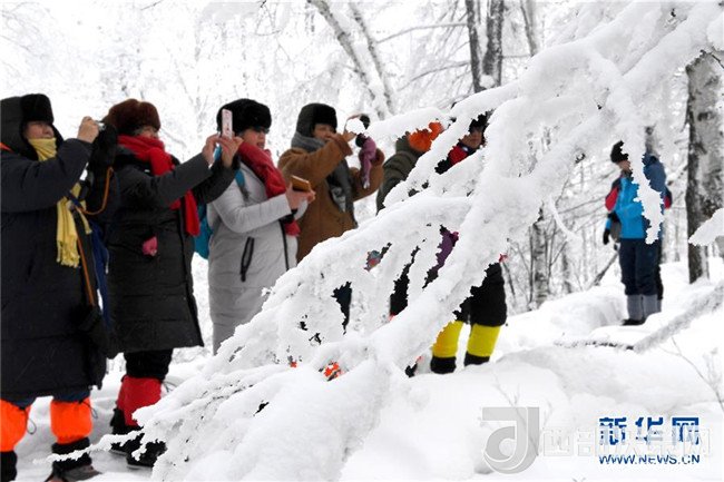 1月9日,游客在阿爾山市白狼崗景區(qū)拍攝霧凇景觀。