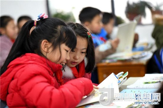 2月25日,貴州省遵義市文化小學(xué)四年級(jí)5班的學(xué)生在教室閱讀剛剛領(lǐng)到的新書。