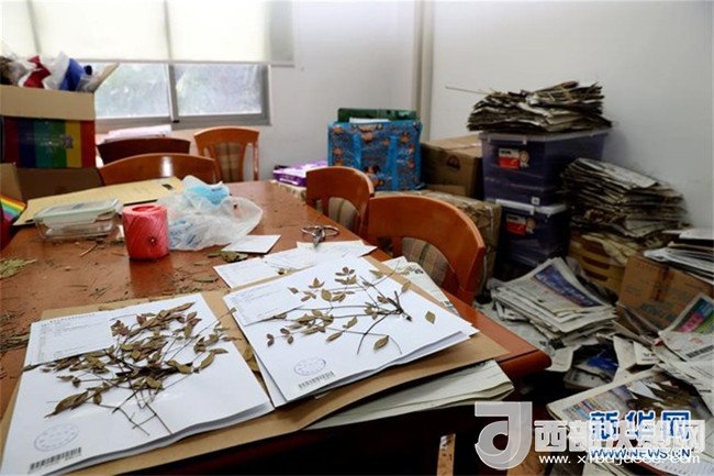 在復(fù)旦大學(xué)鐘揚(yáng)的工作間里,大量報(bào)紙中夾存著他和團(tuán)隊(duì)從各地采集的待整理植物標(biāo)本(2018年1月24日攝)。新華社記者 劉穎 攝