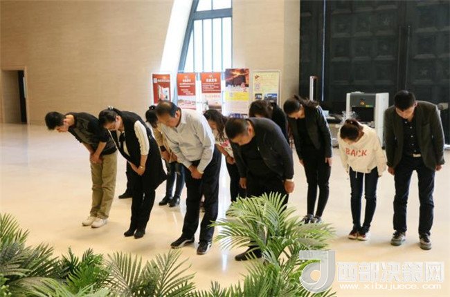 活動(dòng)中,館長(zhǎng)聶明靜、副館長(zhǎng)王雅麗以身作則,率先垂范,首先帶領(lǐng)廣大干部職工積極行動(dòng),擦拭墓碑,修整松林,清除雜草,規(guī)整垃圾,用這種簡(jiǎn)單而樸實(shí)的行動(dòng)來(lái)緬懷祭奠革命英魂。接著在王雅麗的主持下,由聶明靜帶頭紛紛向?yàn)楹葱l(wèi)陜甘邊革命勝利果實(shí)而英勇獻(xiàn)身的南梁閆洼子四十二烈士敬獻(xiàn)鮮花、鞠躬默哀、聽(tīng)述先輩事跡,并赴新館序廳向?yàn)榻⑿轮袊?guó)而鞠躬盡瘁矢志一生的“五大書(shū)記”(毛澤東、周恩來(lái)、朱德、劉少奇、任弼時(shí))銅像雕塑祭花默哀、撣拭塵灰,真切地表達(dá)了每一位紀(jì)念館人對(duì)無(wú)數(shù)英烈先賢革命壯舉的深切緬懷和偉大革命領(lǐng)袖的哀思敬慕之情。