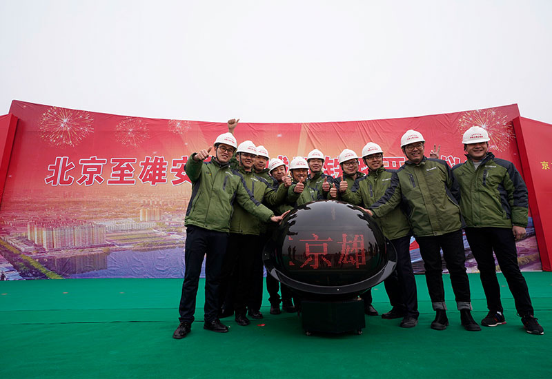 河北雄安新區(qū)首個(gè)重大交通項(xiàng)目北京至雄安城際鐵路(簡(jiǎn)稱“京雄城際鐵路”)正式開(kāi)工建設(shè),這是建設(shè)者在開(kāi)工儀式現(xiàn)場(chǎng)合影留念(2月28日攝)。新華社記者 邢廣利 攝