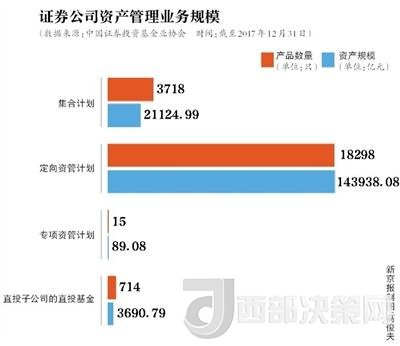 基金業(yè)協(xié)會(huì)數(shù)據(jù)顯示,截至2017年末,證券公司資產(chǎn)管理業(yè)務(wù)規(guī)模16.88萬(wàn)億元,相比2017年一季度末18.77萬(wàn)億元(最高值)減少1.89萬(wàn)億元。其中定向資管計(jì)劃產(chǎn)品規(guī)模為14.39萬(wàn)億元,相比2017年一季度末16.06萬(wàn)億元下滑1.67萬(wàn)億元。也就是說(shuō)在券商資管規(guī)模縮減的1.89萬(wàn)億中,8成左右是通道業(yè)務(wù)。