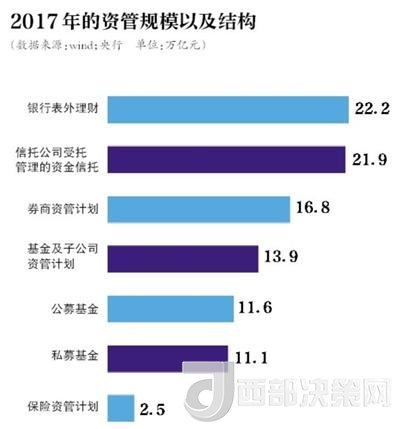 央行數(shù)據(jù)顯示,近年來(lái),我國(guó)金融機(jī)構(gòu)資管業(yè)務(wù)規(guī)模不斷攀升,截至2017年末,不考慮交叉持有因素,總規(guī)模已達(dá)百萬(wàn)億元。其中,銀行表外理財(cái)產(chǎn)品資金余額為22.2萬(wàn)億元,信托公司受托管理的資金信托余額為21.9萬(wàn)億元。同時(shí),互聯(lián)網(wǎng)企業(yè)、各類(lèi)投資顧問(wèn)公司等非金融機(jī)構(gòu)開(kāi)展資管業(yè)務(wù)也十分活躍。