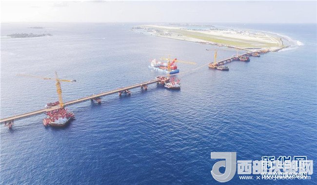 這是2017年7月6日俯拍的馬爾代夫中馬友誼大橋建設(shè)現(xiàn)場。中馬友誼大橋于2016年初正式動工,是中馬共建“一帶一路”的重要合作項(xiàng)目。作為馬爾代夫有史以來第一座大橋,同時(shí)也是印度洋上第一座跨海大橋,中馬友誼大橋連通馬爾代夫首都馬累和機(jī)場島,由橋梁、填海路堤及道路等組成,使用壽命100年。新華社發(fā)