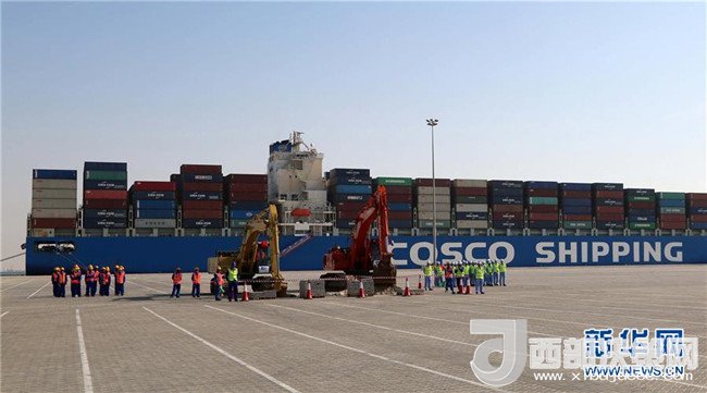 這是2017年11月5日,在阿拉伯聯(lián)合酋長國阿布扎比,中遠(yuǎn)海運(yùn)港口有限公司舉行中遠(yuǎn)海運(yùn)港口阿布扎比碼頭正式動工暨場站租賃簽約儀式,標(biāo)志著中國和阿聯(lián)酋“一帶一路”項(xiàng)目建設(shè)取得新進(jìn)展。新華社記者蘇小坡 攝