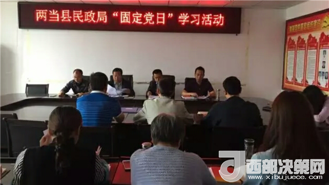 西部決策網(wǎng)——西部大開發(fā)訊 (帥華鋒 通訊員 馬存福 趙雪瓊)5月29日上午,甘肅兩當縣民政局在三樓會議室開展“固定黨日”學(xué)習(xí)活動,全體黨員職工參加。民政局長、黨支部書記田春參加并主持學(xué)習(xí)活動。