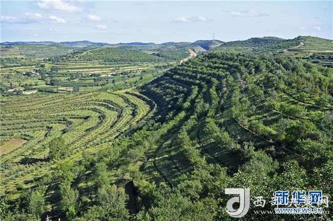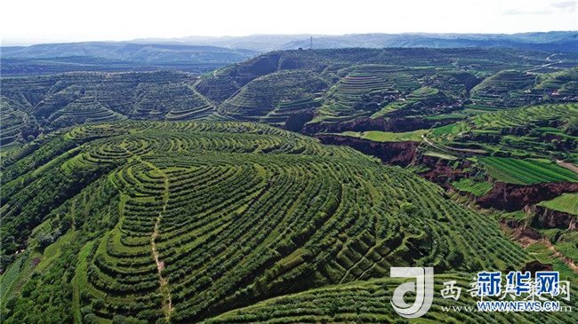 寧夏彭陽縣金雞坪梯田公園(7月16日無人機(jī)拍攝)。