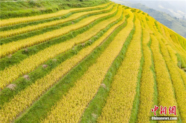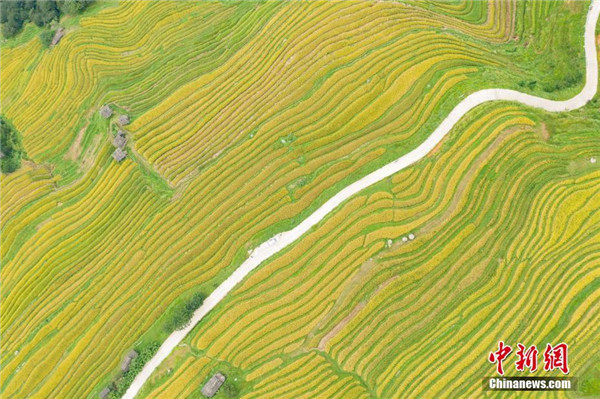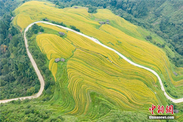 金秋時節(jié),貴州省榕江縣計劃鄉(xiāng)陽開梯田水稻進入成熟期,金黃色的梯田構(gòu)成了一幅美麗的秋天圖景。