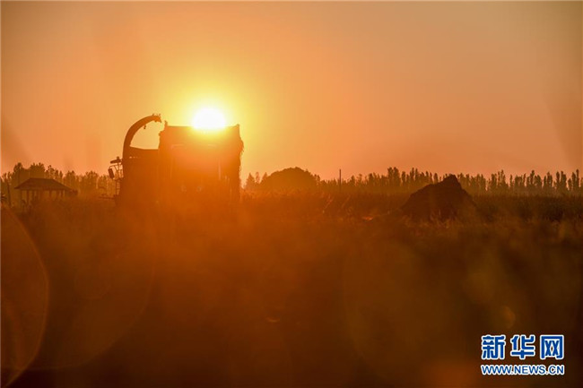 9月26日,收割機在新疆察布查爾錫伯自治縣納達齊牛錄鄉(xiāng)的一處稻田收割水稻。眼下,地處新疆伊犁河谷的察布查爾錫伯自治縣約20萬畝水稻迎來收割季。當?shù)剞r民搶抓農時,忙碌在金色田園中。記者 胡虎虎 攝