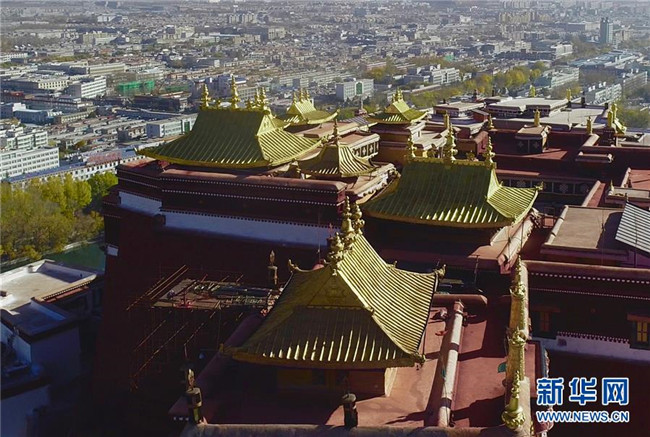 2016年,根據(jù)布達(dá)拉宮管理處申報(bào)修繕項(xiàng)目的申請(qǐng),國家文物局先后撥款3100余萬元,于2017年正式啟動(dòng)了布達(dá)拉宮頂層7座金幢、7座寶瓶以及五世、七世、八世和九世達(dá)賴靈塔殿及帕巴拉康殿五座金頂?shù)男蘅樄こ獭?新華社記者普布扎西 攝