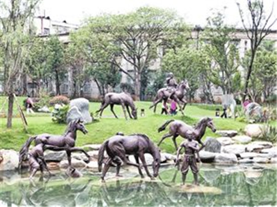 今年6月30日,《翠湖周邊歷史文化片區(qū)整治提升規(guī)劃》中的翠湖洗馬河水系恢復(fù)及帶狀公園對(duì)外開放,消失許久的“柳營(yíng)洗馬”景觀重現(xiàn)翠湖邊,蜿蜒的河道從兩岸柳蔭下穿過,無(wú)論是具有明清歷史特色的兵馬奔騰的青銅雕塑,還是古樸典雅的活字印刷,抑或是獨(dú)特的噴泉造型,無(wú)不重現(xiàn)了600多年前沐英“柳營(yíng)春試馬、虎帳夜談兵”的歷史文化,吸引著過往市民和游客,被稱為“昆明之眼”的翠湖,因其更具亮色。