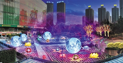 在嘉陵公園的景觀綠化帶,一個(gè)“星空月夜”即將呈現(xiàn)。這是觀音橋商圈迎春燈飾的一大亮點(diǎn)。大型的球形和花形宮燈,以及精心設(shè)計(jì)的光雕小品,組合而成的燈飾群,將在步行街上打造一片“星空月夜”。