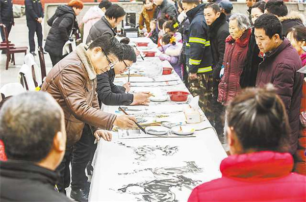 昨日,市文聯(lián)系統(tǒng)的藝術(shù)家們?yōu)楫?dāng)?shù)鼐用癖硌萘?3個(gè)精彩紛呈的文藝節(jié)目。市文聯(lián)等還在現(xiàn)場(chǎng)組織了送春聯(lián)、送書畫、送“全家福”合照、送民俗剪紙等活動(dòng)。“作為一名文藝工作者,只有聽取群眾呼聲、汲取群眾智慧,才能更好地用文藝為群眾服務(wù)。”市文聯(lián)副主席程聯(lián)群說(shuō)。(記者 趙迎昭)