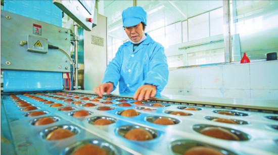 每枚鴨蛋都要經(jīng)過(guò)嚴(yán)格檢查。 文/攝本報(bào)記者劉心楊