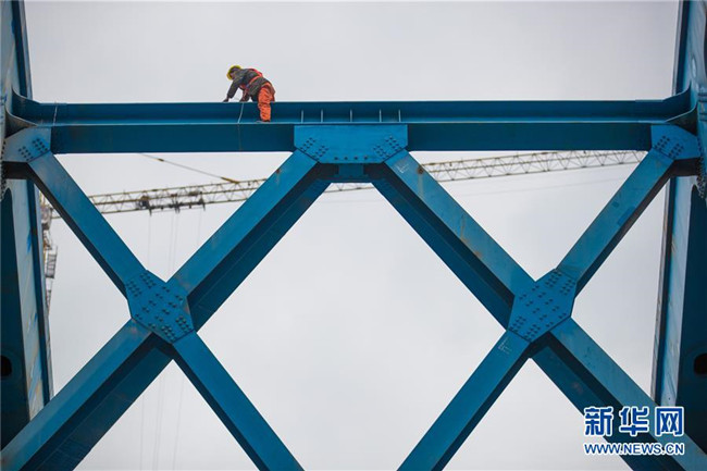 目前,成貴高鐵控制性工程鴨池河特大橋建設(shè)已進(jìn)入最后沖刺階段,大橋主體工程完工,鋼軌鋪設(shè)已經(jīng)完成。預(yù)計該橋?qū)⒂谀陜?nèi)竣工。 新華社記者 劉續(xù) 攝