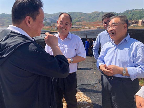 苗鄉(xiāng)三七董事長(zhǎng)余育啟(左二)人民網(wǎng) 張玫/攝