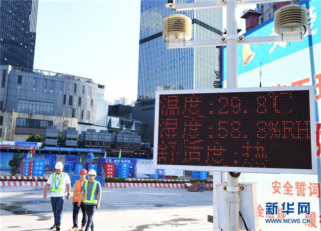 這是6月5日在重慶化龍橋超高層項(xiàng)目施工現(xiàn)場拍攝的環(huán)境監(jiān)測系統(tǒng)顯示屏。新華社記者 王全超 攝