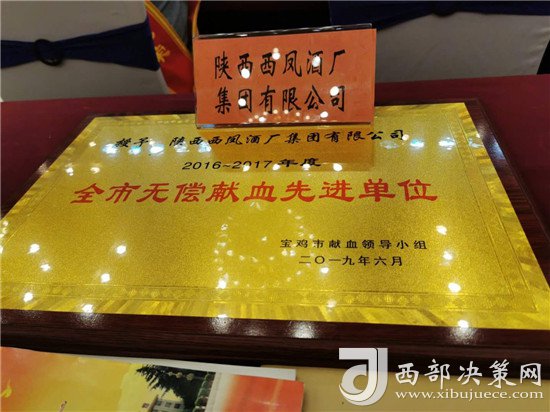 6月14日是第16個(gè)世界獻(xiàn)血者日,當(dāng)天下午,寶雞市無(wú)償獻(xiàn)血工作會(huì)議在寶雞市萬(wàn)福七星大酒店召開(kāi)。寶雞市副市長(zhǎng)李瑛、市政協(xié)副主席宋建國(guó)、各縣(區(qū))代表、市獻(xiàn)血領(lǐng)導(dǎo)小組成員單位代表、全市二級(jí)以上綜合醫(yī)院、中醫(yī)醫(yī)院、婦幼保健院代表及受表彰的無(wú)償獻(xiàn)血先進(jìn)單位和先進(jìn)個(gè)人代表共同參加了會(huì)議。會(huì)上,西鳳集團(tuán)公司被寶雞市獻(xiàn)血領(lǐng)導(dǎo)小組授予“2016—2017年度全市無(wú)償獻(xiàn)血先進(jìn)單位”榮譽(yù)稱號(hào),受到表彰獎(jiǎng)勵(lì)。