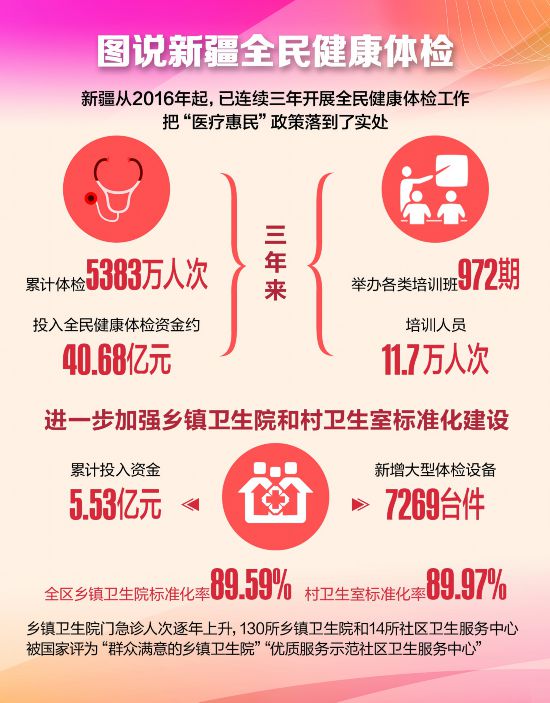 今年是新疆連續(xù)第四年實施全民健康體檢,新疆全民健康體檢工作逐步進入常態(tài)化階段。