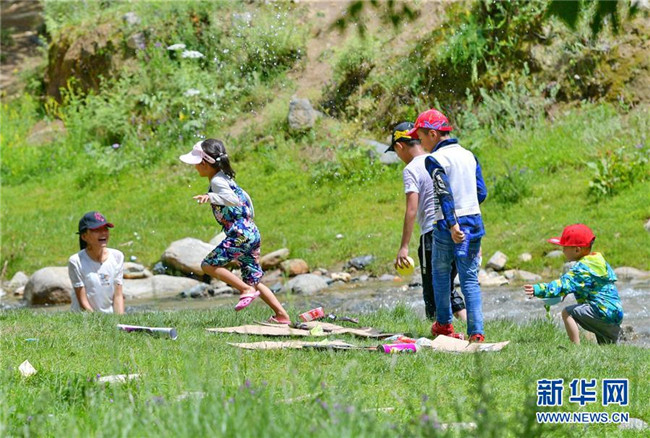 孩子們在達東村景區(qū)溫泉里嬉戲(7月20日攝)。西藏拉薩市柳梧鄉(xiāng)達東村是一個千年古村,也曾是一個貧困村。近年來,依托秀美的自然風光、深厚的歷史文化和淳樸的風土人情,當地政府實施文化旅游產業(yè)精準扶貧,使達東村蛻變成為鄉(xiāng)村旅游勝地。新華社記者張汝鋒攝